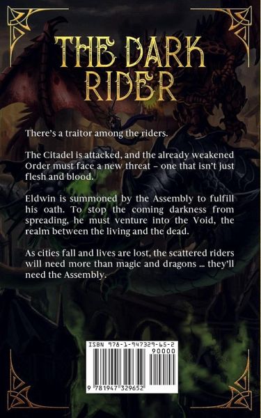 There's a traitor among the riders. The Citadel is attacked, and the already weakened Order must face a new threat - one that isn't just flesh and blood. Eldwin is summoned by the Assembly to fulfill his oath. To stop the coming darkness from spreading, he must venture into the Void, the realm between the living and the dead. As cities fall and lives are lost, the scattered riders will need more than magic and dragons ... they'll need the Assembly. Fans of Sarah K.L. Wilson's Dragon School, Christopher Paolini's Eragon and Anne McCaffrey's Dragon Riders of Pern will feel right at home. The Dark Rider is the tenth episode of the series Dragon Riders of Osnen.