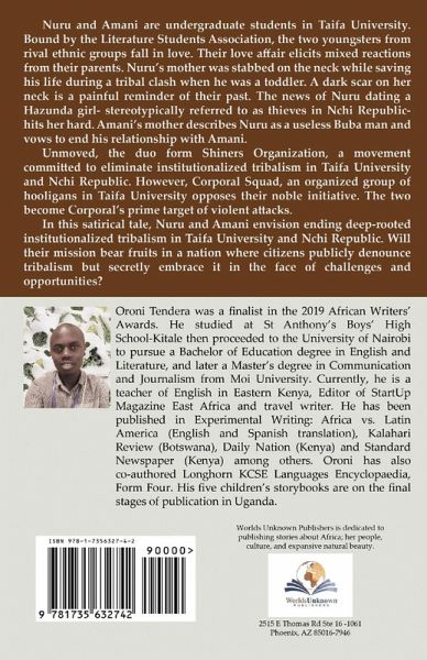 Nuru and Amani are undergraduate students in Taifa University. Bound by the Literature Students Association, the two youngsters from rival ethnic groups fall in love. Their love affair elicits mixed reactions from their parents. Nuru's mother was stabbed on the neck while saving his life during a tribal clash when he was a toddler. A dark scar on her neck is a painful reminder of their past. The news of Nuru dating a Hazunda girl- stereotypically referred to as thieves in Nchi Republic- hits her hard. Amani's mother describes Nuru as a useless Buba man and vows to end his relationship with Amani. Unmoved, the duo form Shiners Organization, a movement committed to eliminate institutionalized tribalism in Taifa University and Nchi Republic. However, Corporal Squad, an organized group of hooligans in Taifa University opposes their noble initiative. The two become Corporal's prime target of violent attacks. In this satirical tale, Nuru and Amani envision ending deep-rooted institutionalized tribalism in Taifa University and Nchi Republic. Will their mission bear fruits in a nation where citizens publicly denounce tribalism but secretly embrace it in the face of challenges and opportunities?
