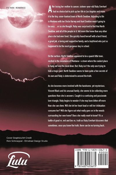 After losing her mother to cancer, sixteen-year-old Ruby Everhart had no choice but to pick up her life in Los Angeles and move it to the tiny, snow-banked town of North Swallow. Adjusting to life in Montana with her Uncle Harvey and Aunt Emeline wasn't going to be easy...or so she thought. Ruby was surprised to find that North Swallow, and all of the people in it, felt more like home than any other place she had ever lived. She quickly found herself with a best friend, a great job, a loving and supportive family, and a boyfriend who just so happened to be the most gorgeous boy in school. On the surface, North Swallow appeared to be a quaint little town, nestled in the mountains of Montana-a town where the coolest place to hang out was the local diner. But, Ruby isn't the only one trying to hide a tragic past. North Swallow seems to have quite a few secrets of its own and Ruby is determined to unravel the truth.