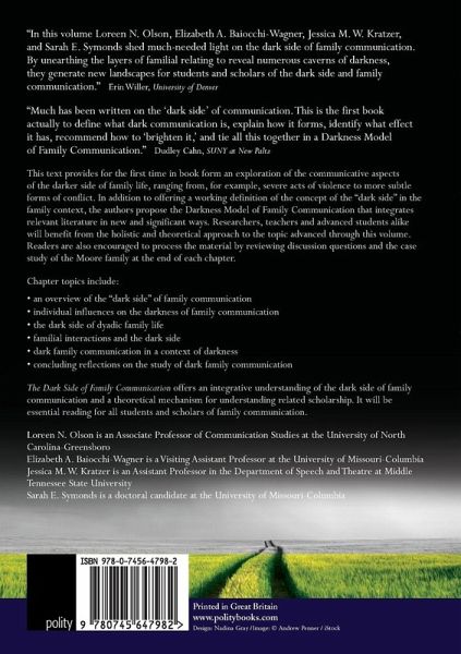 "This text provides for the first time in book form an exploration of the communicative aspects of the darker side of family life, ranging from, for example, severe acts of violence to more subtle forms of conflict. In addition to offering a working definition of the concept of the 'dark side' in the family context, the authors propose the Darkness Model of Family Communication that integrates relevant literature in new and significant ways."--p. 4 of cover