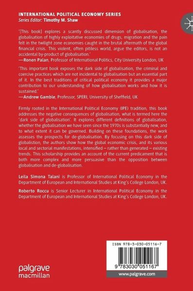 1. Introduction: The Globalisation Debate: From De-Globalisation to the Dark Side of Globalisation.- 2. Chapter 2: Dark Futures: Super-Rich Farmers and Derivatives Markets in an Unstable World.- 3. Chapter 3: The Dark Side of Global Production Networks: Economic 'Rebalancing' and Labour Exploitation in China's Contemporary Political Economy.- 4. Chapter 4: Globalisation and Irregular Migration: Does Deterrence Work?.- 5. Chapter 5: Traditional Organised Crime on the Move. Exploring the Globalisation of the Calabrian 'Ndrangheta.- 6. Chapter 6: Placing Austerity in Context: The Greek Case Between Neo-Liberal Globalisation and an Ordoliberal EU.- 7. Chapter 7: The Italian Way to Globalisation: Moving to the Dark Side. Between Irregular Migration and the Underground Economy.- 8. Chapter 8: The Shadow of Violence and Intervention: Balkan Wars as an Extralegal Deal.