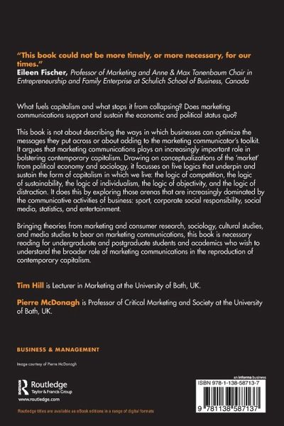 This book is not about describing the ways in which businesses can optimize the messages they put across or about adding to the marketing communicator's toolkit. This book argues that marketing communications plays an increasingly important role in bolstering contemporary capitalism. Drawing on conceptualizations of the 'market' from political economy and sociology, it focusses on five logics that underpin and sustain the form of capitalism in which we live: the logic of competition, the logic of sustainability, the logic of individualism, the logic of objectivity, and the logic of distraction. It does this by exploring those arenas which are increasingly dominated by the communicative activities of business: sport, CSR, social media, statistics, and entertainment.