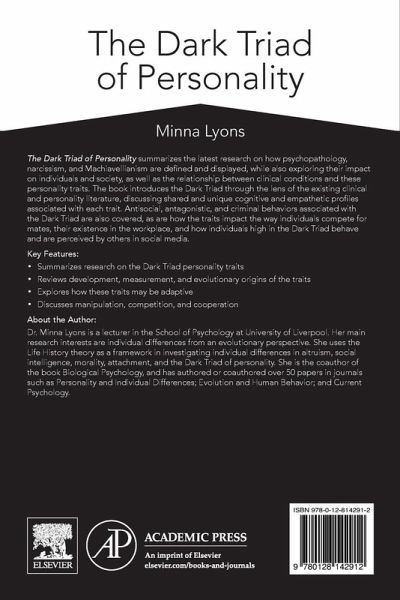 The Dark Triad of Personality: Narcissism, Machiavellianism, and Psychopathy in Everyday Life summarizes the latest research on how these personality traits (psychopathology, narcissism, Machiavellianism) are defined and displayed, while also exploring the impact they have on individuals and society, the relationship between clinical conditions and personality traits, and their adaptivity. The book introduces the Dark Triad through the lens of existing clinical and personality literature, discussing shared and unique cognitive and empathetic profiles associated with each trait. Antisocial, antagonistic, and criminal behaviors associated with the Dark Triad are also covered, as is the way these individuals compete socially and in the workplace.