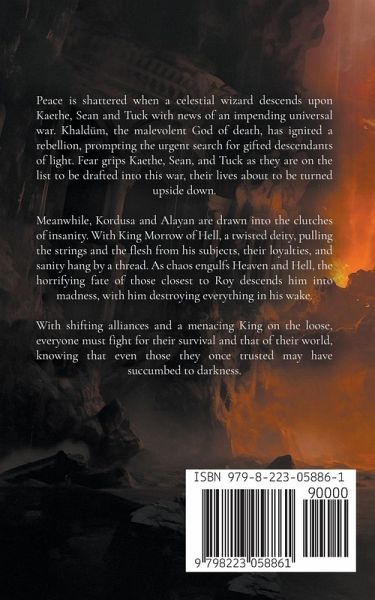 Peace is shattered when a celestial wizard descends upon Kaethe, Sean, and Tuck with news of an impending universal war. Khaldüm, the malevolent God of death, has ignited a rebellion, prompting the urgent search for gifted descendants of light. Fear grips Kaethe, Sean, and Tuck as they are on the list to be drafted into this war, their lives about to be turned upside down. Meanwhile, Kordusa and Alayan are drawn into the clutches of insanity. With King Morrow of Hell, a twisted deity, pulling the strings and the flesh from his subjects, their loyalties, and sanity hang by a thread. As chaos engulfs Heaven and Hell, the horrifying fate of those closest to Roy descends him into madness, with him destroying everything in his wake. With shifting alliances and a menacing King on the loose, everyone must fight for their survival and that of their world, knowing that even those they once trusted may have succumbed to darkness.