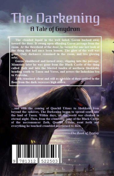There are two swords long thought to be fable. One is the Zyn Blade, legendary sword of the centuries dead King of Zyntrolm, Ilian Zyn. The other is its more powerful sister sword, the Korlan Sword, both forged by the legendary Venenae sorcerer, Korlan. Shown the location of the Zyn Blade in a vision, King M'lerek Zyn retrieves the sword and decides that if the Zyn Blade exists, so must the Korlan Sword. The young king sets off in quest of the Korlan Sword. Little does he know that dark forces are gathering far to the north in the Gnydron nation of Shokkuhl, forces that will set in motion a time known as The Darkening. So it is written in Vergama's Book of Destiny.