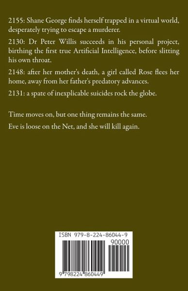 2155: Shane George finds herself trapped in a virtual world, desperately trying to escape a murderer. 2130: Dr Peter Willis succeeds in his personal project, birthing the first true Artificial Intelligence, before slitting his own throat. 2148: after her mother's death, a girl called Rose flees her home, away from her father's predatory advances. 2131: a spate of inexplicable suicides rock the globe. Time moves on, but one thing remains the same. Eve is loose on the Net, and she will kill again.