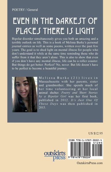 "A Small Introduction" As you may (or may not) know, I'm the author of two books - this one being my third. "It's Just One Of Those Days" was published in 2013. It's a story about a young woman who is abducted and trapped. She lives in constant fear and anxiety, unsure if she'll ever make it out alive. It's basically what was meant to be a short story and exploded into something much larger. "Poetry and Short Stories by a Bipolar Girl" was published in 2012. The title speaks for itself and as you may have guessed from it, I have bipolar disorder (among other things). I took a bunch of poems and short stories I'd written while either manic or depressed and put them together to make a book. My goal was to show a little bit about what mental illness does to people, while also making a fun-to-read book of course. Whether I succeeded or not is up to my readers. But I decided that showing mental illness to the world and how it truly affects us is something I still want to do. Which brings us to this book. I decided to change things up a bit (okay more than a bit) and turn all of my journal entries into a book. Yes, my personal journal entries written over the past few years. I figured if I really do want to help people understand mental illness, why not take them directly into the mind of someone who suffers from it? It varies from entry to entry. At the beginning I'm very clearly manic, but for pretty much the rest of it I'm extremely depressed. There are relationship problems, crappy days, hallucinating, depression, paranoia, self harm, anxiety... You name it, it's probably here. I left nothing out of the entries- the only thing I did was change everyone's name (for their sake, yes, but mostly because I was too lazy to ask permission to use their real names). Having bipolar disorder gives you both a great and a terrible outlook on life. As I said, there is a lot of depression in this book - that's "The Darkness." Then there are times when I'm either manic or just feelin
