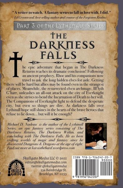 The epic adventure that began in The Darkness Returns reaches its dramatic conclusion! Following an ancient prophecy, Rhoe and his companions now travel to ask the long-hidden elves for aid. Getting there will be hard but allies may be found even in the strangest of places. Meanwhile, the resurrected elven archmage, Ill'lyth G'harr, unleashes an all-out attack on the city of Everknight even as she strives to bend the Incarnation of Death to her will. The Companions of Everknight fight to defend the desperate city, but even so things are dire. As darkness falls over Lythinall hope still shines in the hearts of the brave heroes that refuse to lie down... but will it be enough?