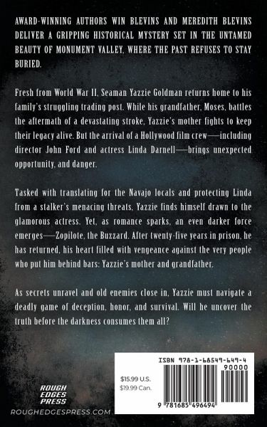 Award-winning authors Win Blevins and Meredith Blevins deliver a gripping historical mystery set in the untamed beauty of Monument Valley, where the past refuses to stay buried. Fresh from World War II, Seaman Yazzie Goldman returns home to his family's struggling trading post. While his grandfather, Moses, battles the aftermath of a devastating stroke, Yazzie's mother fights to keep their legacy alive. But the arrival of a Hollywood film crew-including director John Ford and actress Linda Darnell-brings unexpected opportunity, and danger. Tasked with translating for the Navajo locals and protecting Linda from a stalker's menacing threats, Yazzie finds himself drawn to the glamorous actress. Yet, as romance sparks, an even darker force emerges-Zopilote, the Buzzard. After twenty-five years in prison, he has returned, his heart filled with vengeance against the very people who put him behind bars: Yazzie's mother and grandfather. As secrets unravel and old enemies close in, Yazzie must navigate a deadly game of deception, honor, and survival. Will he uncover the truth before the darkness consumes them all?