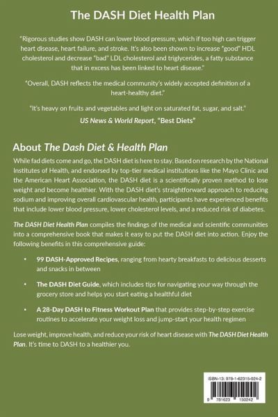 While fad diets come and go, the DASH diet is here to stay. Based on research by the National Institutes of Health, and endorsed by top-tier medical institutions like the Mayo Clinic and the American Heart Association, the DASH diet is a scientifically proven method to lose weight and become healthier. With the DASH diet's straightforward approach to reduce sodium and improve overall cardiovascular health, participants have experienced benefits that include lower blood pressure, lower cholesterol levels and a reduced risk of diabetes. In The DASH Diet Health Plan, bestselling health and nutrition author John Chatham compiles the findings of the medical and scientific community into a comprehensive book that makes it easy to put the DASH diet into action. Enjoy the following benefits in this comprehensive guide: * 99 DASH-approved Recipes, ranging from hearty lunches to savory desserts, and all the snacks in between * 147 Dash-approved Foods, ranging from meats and seafood to sweets * The DASH Diet Guide includes tips for navigating your way through the grocery store and helps you start eating a healthy diet * 28-day DASH to Fitness workout plan provides step-by-step exercise routines to accelerate your weight loss and jumpstart your health regimen * 14-day Menu Planner to help you get started Lose weight, improve health and reduce your risk of heart disease with John Chatham's The DASH Diet Health Plan. It's time to DASH to a healthier you.