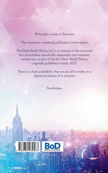 The substance underlying all being is information!The Data World Theory 2.0 is a reduced to the essentials but nevertheless specifically expanded and massively revised new version of the first Data World Theory, originally published in early 2015.There is a high probability that we are all in reality in a digital simulation of a universe!