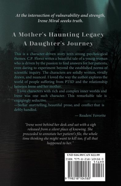 The Daughter Bond is a thought-provoking and compelling tale about the strength of women and their capacity to heal. After her mother's funeral, Latina psychologist Irene Míral is more determined than ever to make the new PTSD unit she heads at Lakeside Hospital a success. Her mother's legacy of domestic violence and her haunting perceptual experiences drive Irene's desire to rectify the world for women who have suffered trauma. As she works to restore normalcy to the lives of eight traumatized Hispanic women, she has to fight for her program's survival and the dignity of the women under her care. She did not expect to encounter professional peril in the person of Walter Freile, the entitled and biased supervising psychiatrist. Hoping to find answers to her mother's strange perceptual experiences and possibly a link to her patients' flashbacks, Irene accepts an invitation to collaborate on a paranormal research project. She and her research partner, David, are convinced their subjects possess a unique gift for telepathic communication. Soon, Irene finds herself in an emotional storm. Grappling with the intense feelings she is developing for David and the upheaval at Lakeside, she faces a crossroads in her life's journey. The consequences are unforeseen; the repercussions are staggering.