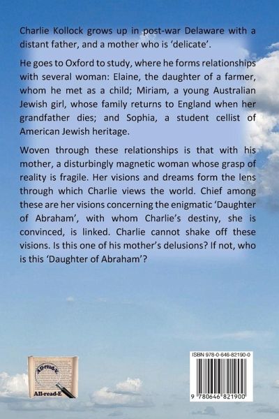 Charlie Kollock grows up in post-war Delaware with a distant father, and a mother who is 'delicate'. He goes to Oxford to study, where he forms relationships with several woman: Elaine, the daughter of a farmer, whom he met as a child; Miriam, a young Australian Jewish girl, whose family returns to England when her grandfather dies; and Sophia, a student cellist of American Jewish heritage. Woven through these relationships is that with his mother, a disturbingly magnetic woman whose grasp of reality is fragile. Her visions and dreams form the lens through which Charlie views the world. Chief among these are her visions concerning the enigmatic 'Daughter of Abraham', with whom Charlie's destiny, she is convinced, is linked. Charlie cannot shake off these visions. Is this one of his mother's delusions? If not, who is this 'Daughter of Abraham'?