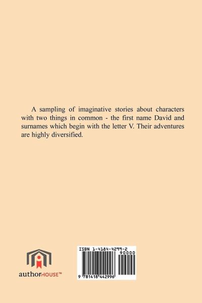 A sampling of imaginative stories about characters with two things in common - the first name David and surnames which begin with the letter V. Their adventures are highly diversified.