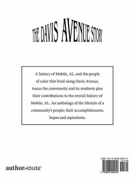 A history of Mobile, AL. and the people of color that lived along Davis Avenue, traces the community and its residents plus their contributions to the overall history of Mobile, AL. An anthology of the lifestyle of a community's people; their accomplishments, hopes and aspirations.