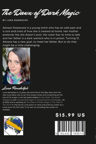 The Dawn of Dark Magic Abraxis Rosewood is a young witch who has an odd past and is sick and tired of how she is treated at home. Her mother pretends like she doesn't exist. Her sister has no time to talk, and her father is a dark warlock who is in prison. Turning 13, Abraxis has a new goal: to meet her father. But to do that might be a little challenging.