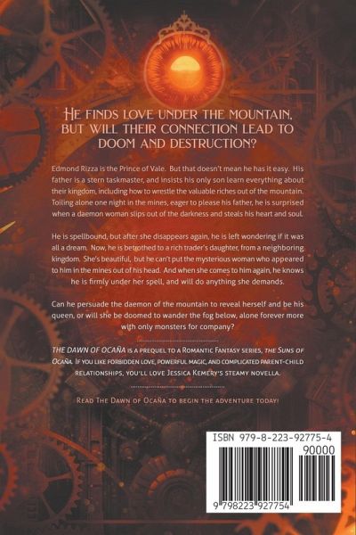 He finds love under the mountain, but will their connection lead to doom and destruction? Edmond Rizza is the Prince of Vale. But that doesn't mean he has it easy. His father is a stern taskmaster, and insists his only son learn everything about their kingdom, including how to wrestle the valuable riches out of the mountain. Toiling alone one night in the mines, eager to please his father, he is surprised when a daemon woman slips out of the darkness and steals his heart and soul. He is spellbound, but after she disappears again, he is left wondering if it was all a dream. Now, he is betrothed to a rich trader's daughter, from a neighboring kingdom. She's beautiful, but he can't put the mysterious woman who appeared to him in the mines out of his head. And when she comes to him again, he knows he is firmly under her spell, and will do anything she demands. Can he persuade the daemon of the mountain to reveal herself and be his queen, or will she be doomed to wander the fog below, alone forever more with only monsters for company? The Dawn of Ocaña is a prequel to a Romantic Fantasy series, the Suns of Ocaña. If you like forbidden love, powerful magic, and complicated parent-child relationships, you'll love Jessica Kemery's steamy novella. Read The Dawn of Ocaña to begin the adventure today!