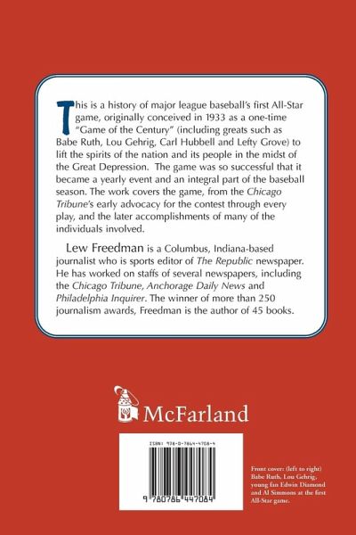This is a history of major league baseball's first All-Star game, originally conceived in 1933 as a one-time "Game of the Century" (including greats such as Babe Ruth, Lou Gehrig, Carl Hubbell and Lefty Grove) to lift the spirits of the nation and its people in the midst of the Great Depression. The game was so successful that it became a yearly event and an integral part of the baseball season. The work covers the game, from the Chicago Tribune's early advocacy for the contest through every play, and the later accomplishments of many of the individuals involved.