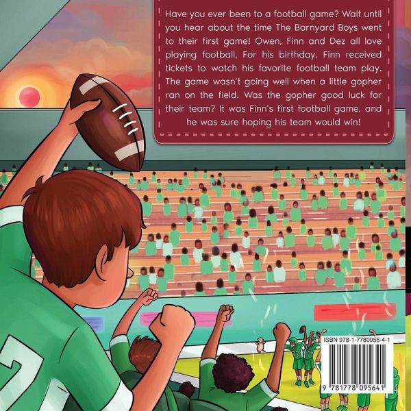 The Barnyard Boys are back in this funny book about football! Finn really likes football, in fact he plays football with his friends and his two brothers, Owen and Dez. Finn turns seven years old and his Grandparents have given him tickets to see his favorite football team. Finn is super excited to see his favorite football team play and hopefully...win?! The Adventures of the Barnyard Boys book series introduces young readers to a wide range of adventures, ideas, and emotions. With comical text and amusing, kid-friendly illustrations, the books teach children to have fun, learn, and persevere when in doubt. Kids can enjoy the adventures and fun of reading while discovering the world around them, one book at a time. These books are perfect for boys, girl, early readers, primary school students and toddlers! This series is an excellent resource for parents and teachers as the books fall into the S.T.E.M. book category. Check out all the books in The Adventures of the Barnyard Boys book series! Other books in The Adventures of the Barnyard Boys book series include: The Day I Discovered a Dinosaur Bone?! The Day Petunia Had Piglets in the Strawberry Patch The Day I Lost My Bear in Cypress Hills