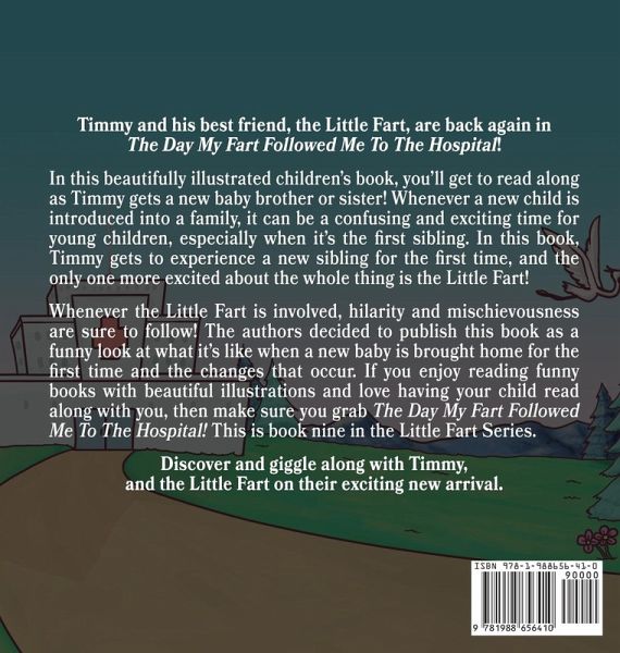 Timmy and his best friend, the Little Fart, are back again in The Day My Fart Followed Me To The Hospital! In this beautifully illustrated children's book, you'll get to read along as Timmy gets a new baby brother or sister! Whenever a new child is introduced into a family, it can be a confusing and exciting time for young children, especially when it's the first sibling. In this book, Timmy gets to experience a new sibling for the first time, and the only one more excited about the whole thing is the Little Fart! Whenever the Little Fart is involved, hilarity and mischievousness are sure to follow! The authors decided to publish this book as a funny look at what it's like when a new baby is brought home for the first time and the changes that occur. If you enjoy reading funny books with beautiful illustrations and love having your child read along with you, then make sure you grab The Day My Fart Followed Me To The Hospital! This is book nine in the Little Fart Series. Discover and giggle along with Timmy, and the Little Fart on their exciting new arrival.