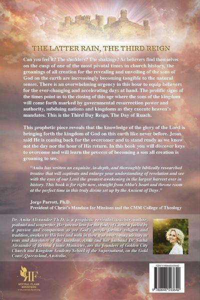 Can you feel it? The shudders? The shakings? As believers find themselves on the cusp of one of the most pivotal times in church history, the groanings of all creation for the revealing and unveiling of the sons of God on the earth are increasingly becoming tangible to the natural senses. There is an overwhelming urgency in this hour to equip believers for the ever- changing and accelerating days at hand. The prolific signs of the times point us to the closing of this age where the sons of the kingdom will come forth marked by governmental resurrection power and authority, subduing nations and kingdoms as they execute heaven's mandates. This is the Third Day Reign, The Day of Ruach. This prophetic piece reveals that the knowledge of the glory of the Lord is bringing forth the kingdom of God on this earth like never before. Jesus said He is coming back for the overcomer and to stand ready as we know not the day nor the hour of His return. In this book you will discover keys to overcome and will learn the process of becoming a son all creation is groaning to see.