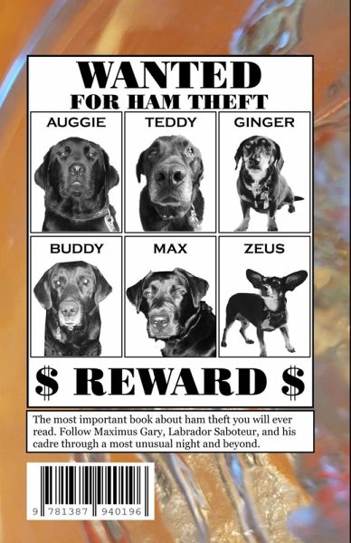 The most important book about ham theft you will ever read. Follow Maximus Gary -- Labrador Saboteur and his cadre of talented dogs as they engineer the heist of the century - a daring Christmas Eve spiral ham heist that devolves into chaos and flowers into lifelong friendship between two groups of historical enemies.