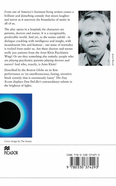 The play opens in a hospital; the characters are patients, doctors and nurses. It is a recognizable, predictable world. And yet, as the scenes unfold - in dialogue crackling with intelligence and insight, with incandescent bite and humour - our sense of normalcy is rocked from under us. Are these doctors and nurses really just patients from the Arno Klein Psychiatric Wing? Or are they something else entirely: people who are playing psychiatric patients playing doctors and nurses? And who, exactly, is Arno Klein? Described by the Boston Globe on its first performance as 'an unselfconscious, fizzing, inventive black comedy that is enormously funny', The Day Room displays Don DeLillo's extraordinary talents in the brightest of lights.