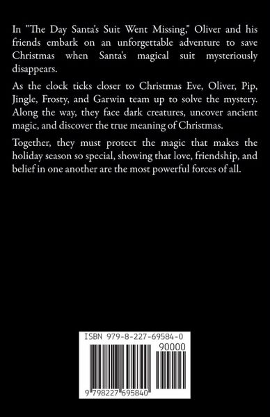 In "The Day Santa's Suit Went Missing," Oliver and his friends embark on an unforgettable adventure to save Christmas when Santa's magical suit mysteriously disappears. As the clock ticks closer to Christmas Eve, Oliver, Pip, Jingle, Frosty, and Garwin team up to solve the mystery. Along the way, they face dark creatures, uncover ancient magic, and discover the true meaning of Christmas. Together, they must protect the magic that makes the holiday season so special, showing that love, friendship, and belief in one another are the most powerful forces of all.