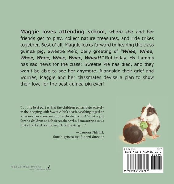 Maggie loves attending school, where she and her friends get to play, collect nature treasures, and ride trikes together. Best of all, Maggie looks forward to hearing the class guinea pig, Sweetie Pie's, daily greeting of "Whee, Whee, Whee, Whee, Whee, Whee, Wheat!" But today, Ms. Lamms has sad news for the class: Sweetie Pie has died, and they won't be able to see her anymore. Alongside their grief and worries, Maggie and her classmates devise a plan to show their love for the best guinea pig ever!