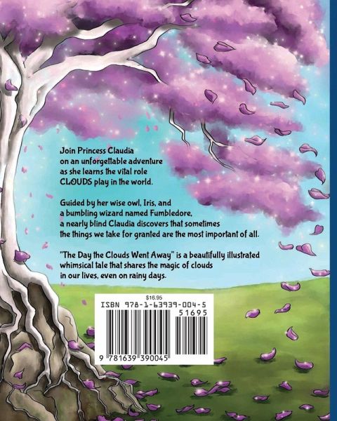 ¿First Place Winner in Children's Fairy Tales at BookFest 2024 A nearly blind Princess Claudia wants her birthday to be perfect, so when dark storm clouds roll in and threaten her celebration, she orders her trusty but bumbling Wizard Fumbledore to make them disappear. Princess Claudia and her guide owl Iris must figure out how to save her Princessdom from disaster. What happens when there are no clouds? The Day the Clouds Went Away is a beautifully illustrated whimsical tale that shares the importance of clouds in our lives, even on rainy days.