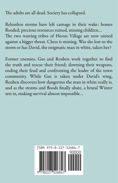 The adult are all dead. Society has collapsed. Relentless storms have left carnage in their wake: homes flooded, precious resources ruined, missing children... The two warring tribes of Heron Village are now united against a bigger threat. Chess is missing. Was she lost to the storm or has David, the enigmatic man in white, taken her? Former enemies, Gus and Reuben work together to find the truth and rescue their friend; downing their weapons, ending their feud and confronting the leader of the town community. While Gus is taken under David's wing, Reuben discovers how dangerous the man in white really is, and as the storms and floods finally abate, a brutal Winter sets in, making survival almost impossible...