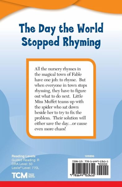 In the magical town of Fable, the nursery rhyme characters who live there have one job, and that's to rhyme. But when the town loses its license to rhyme, Little Miss Muffet must team up with Spider to fix it in this humorous fiction reader.