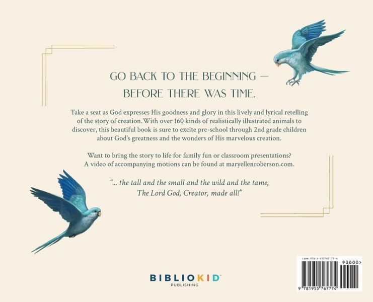 Mary Ellen Roberson is making her children's book debut with her picture book, The Day Time Began - a rhymed retelling of the story of creation found in Genesis 1. She earned BA degrees in English and Theology from Spring Hill College in Mobile, Alabama, and is recently retired from 30 years of home-educating her five children. Teaching her children to write fueled Mary Ellen's long-held desire to one day write children's books of her own. Now, working up a story is among her favorite activities. However, making meaningful memories with family and friends and going on adventures with her husband and their grown-up children still tops the list. Mary Ellen also loves creating and teaching interactive Bible lessons for pre-school through 2nd graders to encourage them to want to know and follow God. For over 35 years, she and her husband have worked together in the AWANA Bible Club program, teaching children and youth of the goodness of God and the power of His Word. And Mary Ellen and her family all love animals - rescuing, caring for, training, and cuddling them. From her life experiences as a mother, teacher, and animal lover, Mary Ellen is excited to be devoting part of her retirement to capturing these stories in picture and chapter books for children and their parents to enjoy. Mary Ellen and her husband have lived in Lake Linganore, MD, for 32 of the 42 years they've been married. Visit Mary Ellen at maryellenroberson.com