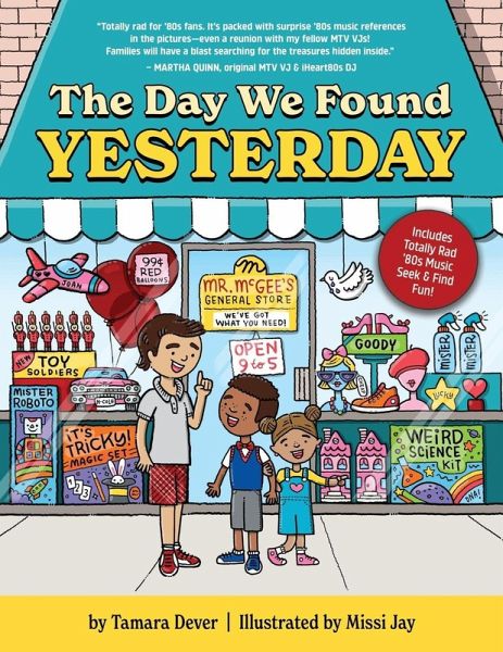 Rewind the '80s. Share the joy. Discover Yesterday. When Eileen, Mickey, and Eddie visit their grandparents, they overhear Papa Jack and Nana Diane talking about something they lost long ago. Determined to solve the mystery, the kids set off on a treasure hunt through town. Along the way, they uncover funny and nostalgic stories but fall short of finding what was missing-or do they? Follow their adventure through vibrant illustrations packed with hidden '80s music references and surprising cameos from iconic musicians and even an original MTV VJ reunion. What they find isn't what they expected, but it turns out to be the greatest treasure of all. Features you'll love:A warm, intergenerational story that bridges generations through shared memories Two seek-and-find challenges for kids and adults Cameos from musicians you love and the VJs who helped make them famous Showcases a loving mixed-race family across generations A unique gift for Grandparents Day, birthdays, and '80s music fans Perfect for Gen X parents and grandparents to read with the kids they love-or on their own. Whether you grew up on big hair and boomboxes or you're sharing that magic with a new generation, The Day We Found Yesterday is a heart-filled reminder that the best treasures are ones that are shared. Ages 6-8 (and nostalgic grown-ups) Makes a great gift from grandkids to their grandparents!