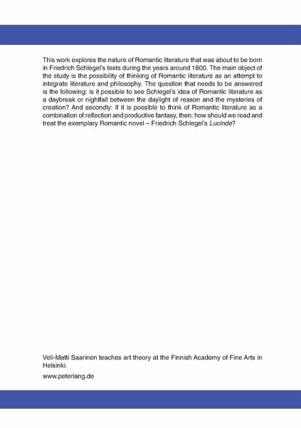 This work explores the nature of Romantic literature that was about to be born in Friedrich Schlegel's texts during the years around 1800. The main object of the study is the possibility of thinking of Romantic literature as an attempt to integrate literature and philosophy. The question that needs to be answered is the following: is it possible to see Schlegel's idea of Romantic literature as a daybreak or nightfall between the daylight of reason and the mysteries of creation? And secondly: if it is possible to think of Romantic literature as a combination of reflection and productive fantasy, then: how should we read and treat the exemplary Romantic novel - Friedrich Schlegel's Lucinde?