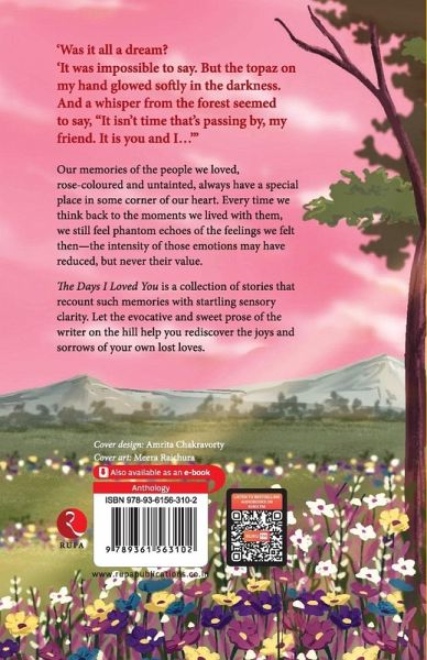 'Was it all a dream? 'It was impossible to say. But the topaz on my hand glowed softly in the darkness. And a whisper from the forest seemed to say, "It isn't time that's passing by, my friend. It is you and I..."' Our memories of the people we loved, rose-coloured and untainted, always have a special place in some corner of our heart. Every time we think back to the moments we lived with them, we still feel phantom echoes of the feelings we felt then-the intensity of those emotions may have reduced, but never their value. The Days I Loved You is a collection of stories that recount such memories with startling sensory clarity. Let the evocative and sweet prose of the writer on the hill help you rediscover the joys and sorrows of your own lost loves.