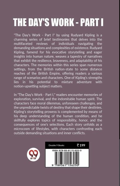 "The Day's Work - Part I" by using Rudyard Kipling is a charming series of brief testimonies that delves into the multifaceted reviews of individuals navigating the demanding situations and complexities of existence. Rudyard Kipling, famend for his evocative storytelling and eager insights into human nature, weaves a tapestry of narratives that exhibit the resilience, braveness, and adaptability of his characters. The memories within this series span numerous settings, from the British nation-state to some distance reaches of the British Empire, offering readers a various range of scenarios and characters. One of Kipling's strengths lies in his potential to mixture adventure with notion-upsetting subject matters. In "The Day's Work - Part I," readers encounter memories of exploration, survival, and the indomitable human spirit. The characters face moral dilemmas, unforeseen challenges, and the unpredictable twists of destiny that shape their destinies. Kipling's storytelling prowess is complemented by means of his deep understanding of the human condition, and he skillfully explores topics of responsibility, honor, and the consequences of one's selections. Each story unfolds as a microcosm of lifestyles, with characters confronting each outside demanding situations and inner conflicts.