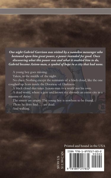 A young boy goes missing. Taken, in the middle of the night. No clues. Nothing except the remnants of a black cloud, like the one coughed up from inside the Doorway of Darkness. A black cloud that takes Axiom-man to a world not his own. A dead world, where a gray and brown sky shrouds an entire city in a miasma of decay. The streets are empty. The young boy is nowhere to be found. Those he does find...are dead. And walking.