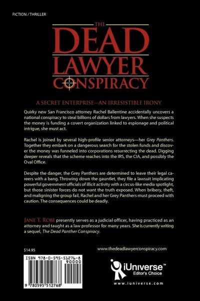 A SECRET ENTERPRISE-AN IRRESISTIBLE IRONY Quirky new San Francisco attorney Rachel Ballentine accidentally uncovers a national conspiracy to steal billions of dollars from lawyers. When she suspects the money is funding a covert organization linked to espionage, and political intrigue, she must act. Rachel is joined by several high-profile senior attorneys-her Grey Panthers. Together they embark on a dangerous search for the stolen funds, and discover the money was funneled into corporations resurrecting the dead. Digging deeper reveals that the scheme reaches into the IRS, the CIA, and possibly the Oval Office. Despite the danger, the Grey Panthers are determined to leave their legal careers with a bang. Throwing down the gauntlet, they file a lawsuit implicating powerful government officials of illicit activity with a circus-like media spotlight, but those sinister forces do not want the truth exposed. When bribery, theft, and maligning the group fail, Rachel and her Grey Panthers must proceed with caution. The consequences could be deadly.