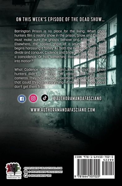 On this week's episode of The Dead Show... Barrington Prison is no place for the living. When ghost hunters film a reality show in the prison, Snow and Cadence must make sure the ghosts behave and follow the rules. Elsewhere, the spoiled ghost of a young southern belle begins harassing a family. As both the living and dead teams divide and conquer, Cadence and Snow wonder if this all just a coincidence. Or has something more nefarious been set into motion? What Cadence and Snow don't know is that the ghost hunters didn't just bring EMF meters and night vision cameras. They have a new, experimental piece of equipment that could threaten everything-if the prison's occupants don't get them first.