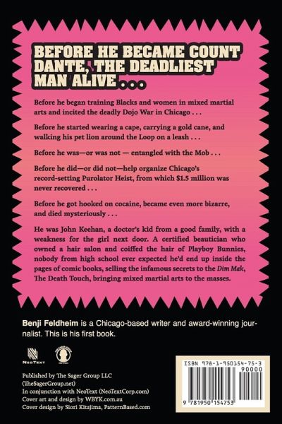 Before he became Count Dante, The Deadliest Man Alive . . . Before he began training Blacks and women in mixed martial arts and incited the deadly Dojo War in Chicago. Before he started wearing a cape, carrying a gold cane, and walking his pet lion around the Loop on a leash . . . Before he was-or was not - entangled with the Mob . . . Before he did-or did not-help organize Chicago's record-setting Purolator Heist, from which $1.5 million was never recovered . . . Before he got hooked on cocaine, became even more bizarre, and died mysteriously . . . He was John Keehan, a doctor's kid from a good family, with a weakness for the girl next door. A certified beautician who owned a hair salon and coiffed the hair of Playboy Bunnies, nobody from high school ever expected he'd end up inside the pages of millions of comic books, selling the infamous secrets to the Dim Mak, The Death Touch, bringing mixed martial arts to the masses.
