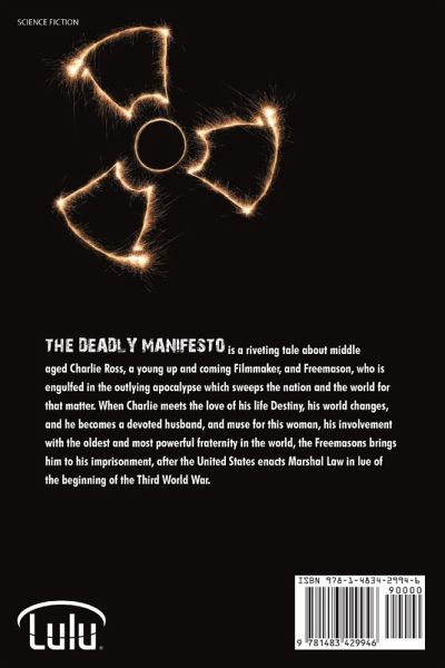 The Deadly manifesto is a riveting tale about middle aged Charlie Ross, a young up and coming Filmmaker, and Freemason, who is engulfed in the outlying apocalypse which sweeps the nation and the world for that matter. When Charlie meets the love of his life Destiny, his world changes, and he becomes a devoted husband, and muse for this woman, his involvement with the oldest and most powerful fraternity in the world, the Freemasons brings him to his imprisonment, after the United States enacts Marshal Law in lue of the beginning of the Third World War.