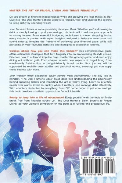 Master the Art of Frugal Living and Thrive Financially Do you dream of financial independence while still enjoying the finer things in life? Dive into "The Deal Hunter's Bible: Secrets to Frugal Living" and uncover the secrets to living richly by spending wisely. Your financial future is more promising than you think. Whether you're drowning in debt or simply looking to pad your savings, this book will transform your approach to money forever. From essential budgeting techniques to clever shopping hacks, every chapter is packed with expert insights designed to help you save more and spend smartly. Imagine the freedom of achieving your financial goals while still partaking in your favourite activities and indulging in occasional luxuries. Curious about how you can make this happen? This comprehensive guide offers actionable strategies that turn frugality into an empowering lifestyle choice. Discover how to outsmart impulse buys, master the grocery game, and even enjoy dining out without guilt. Each chapter unveils new aspects of frugal living-from eco-friendly fashion tips to budget-friendly travel hacks. Your journey will be supported by real-life case studies and practical advice, ensuring you can apply these secrets with ease. Ever wonder what separates savvy savers from spendthrifts? The key lies in mindset. "The Deal Hunter's Bible" dives deep into understanding the psychology behind spending habits and imparting the art of thrifty living. Learn to prioritise needs over wants, invest in quality when it matters, and manage debt effectively. With chapters dedicated to everything from DIY home décor to pet care savings, this book provides a holistic approach to financial health. Ready to leap into a life of abundance? Equip yourself with the tools to finally break free from financial stress. Let "The Deal Hunter's Bible: Secrets to Frugal Living" be your ultimate companion on the path to a fulfilled and prosperous life.