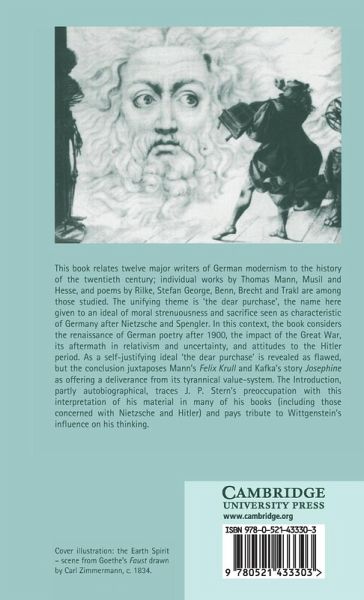 This book studies individual works by twelve major writers of German modernism, including Thomas Mann, Musil, Brecht and Rilke, in relation to the history of the twentieth century. It explores the theme of the 'dear purchase', an ideal of moral strenuousness and sacrifice seen as characteristic of Germany after Nietzsche, and reveals the underlying flaw in this notion as a self-justifying value. In this context, it considers the renaissance of German poetry after 1900, the impact of the War of 1914, its aftermath in uncertainty and relativism, and attitudes to the Hitler period, and finally juxtaposes Mann's Felix Krull and Kafka's story Josephine as a deliverance from the value-system of the title. The Introduction, partly autobiographical, traces J. P. Stern's preoccupation with this interpretation of his material in many of the books he published (especially those concerned with Nietzsche and Hitler), and pays tribute to Wittgenstein's influence on his thinking.