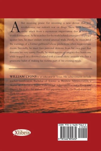 After receiving praise for inventing a new device that will revolutionize our nations war on drugs, Steve fi nds himself under attack from a mysterious organization that is bent on world domination. As he searches for the truth behind a massive conspiracy against him, he must endure several unusual trials. Firstly, he must heed the warnings of a former girlfriend whose predictions often mean certain doom. Secondly, he must face personal demons from his own past that threaten his very sanity. Finally, he must survive a category-fi ve hurricane while trapped on a deserted island with a cannibalistic assassin who has a gruesome habit of making his victims part of his evening meals.