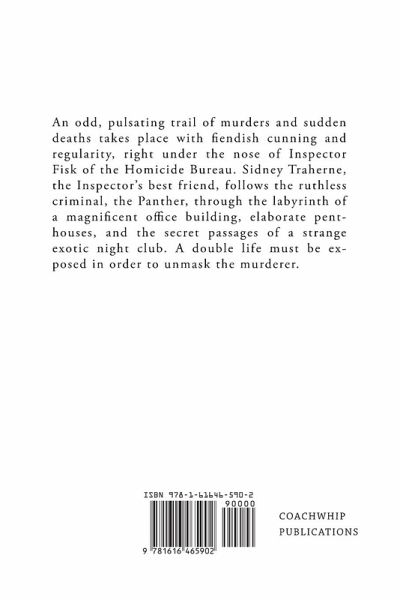 An odd, pulsating trail of murders and sudden deaths takes place with fiendish cunning and regularity, right under the nose of Inspector Fisk of the Homicide Bureau. Sidney Traherne, the Inspector's best friend, follows the ruthless criminal, the Panther, through the labyrinth of a magnificent office building, elaborate penthouses, and the secret passages of a strange exotic night club. A double life must be exposed in order to unmask the murderer. The Death Kiss was first published in 1932.