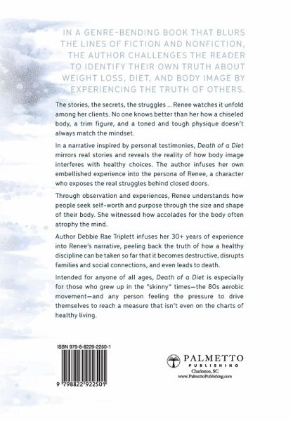 In a genre-bending book that blurs the lines of fiction and nonfiction, the author challenges the reader to identify their own truth about weight loss, diet, and body image by experiencing the truth of others. Fitness professional Renee knows all the stories, the secrets, and the struggles of people working toward fitness goals first-hand. Through her many clients, she's witnessed how people seek self-worth and purpose through the size and shape of their body. Through Renee and her complementing cast of characters, the readers will discover the truth that a chiseled body, a trim figure, and a toned and tough physique, doesn't always match the mindset. In fact, it can lead to death. Inspired by the personas of the author's real clients, Debbie Rae Triplett's new book combines fiction and nonfiction to navigate the pitfalls and mental aspects of pursuing a healthier lifestyle. Death of a Diet mirrors real stories and reveals the reality of how body image interferes with healthy choices. Debbie Rae Triplett is a former journalist, which includes freelancing for Muscle & Fitness Hers and interviewing national fitness competitors and reporting on The Arnold Fitness Weekend. She is also the author of The Write to Heal Project, a journaling workbook that has helped thousands of women nationwide process life transitions.