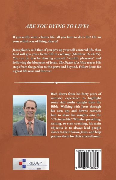 ARE YOU DYING TO LIVE? If you really want a better life, all you have to do is die! Die to your selfish way of living, that is! Jesus plainly said that, if you give up your self-centered life, then God will give you a better life in exchange (Matthew 16:24-25). You can do that by denying yourself "worldly pleasures" and following the blueprint of Jesus. The Death of a Man traces His steps from the garden to the grave and beyond. Follow Jesus for a great life now and forever!