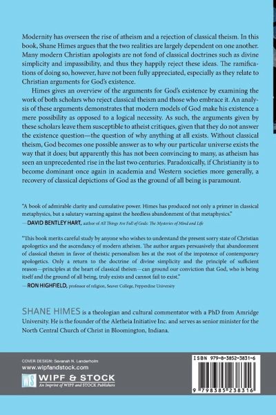 Modernity has seen the rise of atheism and a rejection of classical theism. In this book, Shane Himes argues that the two realities are largely dependent on one another. Many modern Christian apologists are not fond of classical doctrines such as divine simplicity and impassibility, and thus they happily reject these ideas. The ramifications of doing so, however, have not been fully appreciated, especially as they relate to Christian arguments for God’s existence. Himes gives an overview of the arguments for God’s existence by examining the work of both scholars who reject classical theism and those who embrace it. An analysis of these arguments demonstrates that modern models of God make his existence a mere possibility as opposed to a logical necessity. As such, the arguments given by these scholars leave them susceptible to atheist critiques, given that they do not answer the question of why anything exists. Without classical theism, God becomes one possible answer as to why our particular universe exists the way that it does; but apparently this has not been convincing to many, as atheism has seen an unprecedented rise in the last two centuries. Paradoxically, if Christianity is to become dominant once again in academia and Western societies more generally, a recovery of classical depictions of God as the ground of all being is paramount.