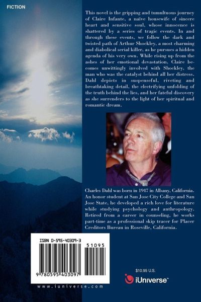 This novel is the gripping and tumultuous journey of Claire Infante, a naïve housewife of sincere heart and sensitive soul, whose innocence is shattered by a series of tragic events. In and through these events, we follow the dark and twisted path of Arthur Shockley, a most charming and diabolical serial killer, as he pursues a hidden agenda of his very own. While rising up from the ashes of her emotional devastation, Claire be-comes unwittingly involved with Shockley, the man who was the catalyst behind all her distress. Dahl depicts in suspenseful, riveting and breathtaking detail, the electrifying unfolding of the truth behind the lies, and her fateful discovery as she surrenders to the light of her spiritual and romantic dream.